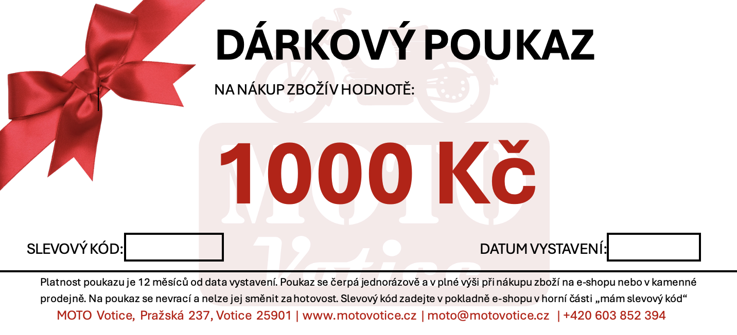 Platnost poukazu je 12 měsíců od data vystavení. Poukaz se čerpá jednorázově a v plné výši při nákupu zboží na e-shopu nebo v kamenné prodejně. Na poukaz se nevrací a nelze jej měnit za hotovost. Slevový kód zadejte v pokladně e-shopu v horní čísti “mám slevový kód”